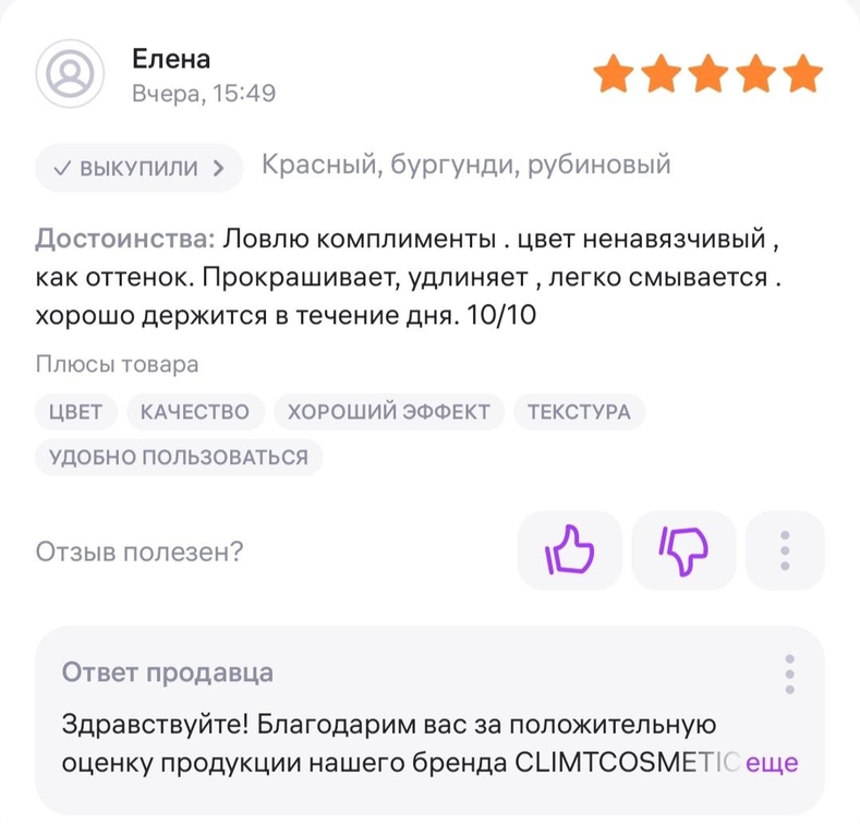 | Climt бургунди | Без изменений | Всё ещё идеально |